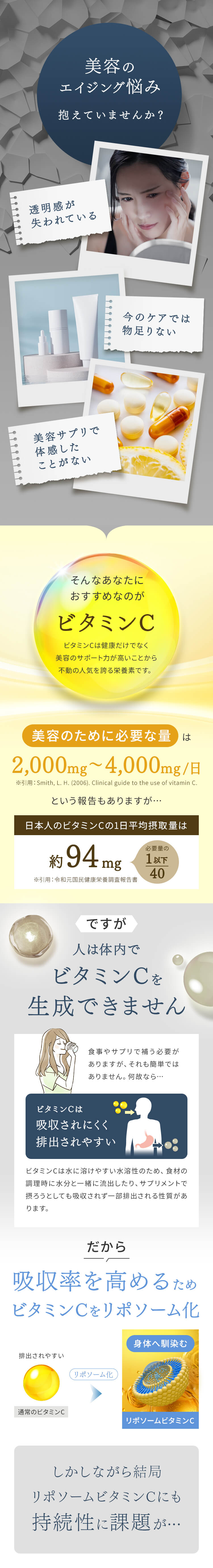 リポソーム化×タイムリリース型ビタミンCを独自配合。 -