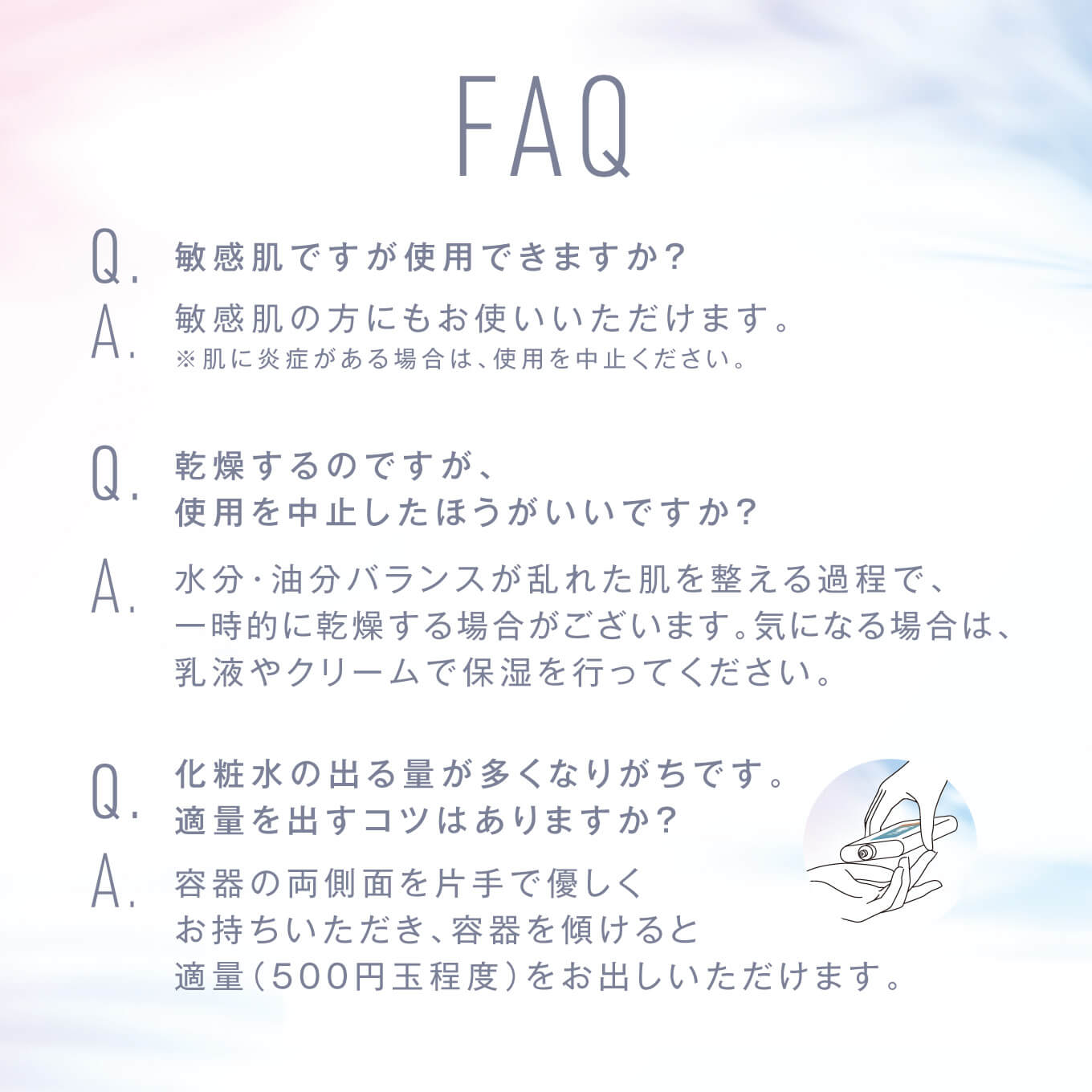 美容クリニックの最前線をホームケアに。 皮脂や毛穴トラブルが気になる肌に、3つのひきしめ成分と角質ケア成分を配合した化粧水です。高濃度※2アゼライン酸誘導体※1をはじめとする3つのひきしめ成分アゼライン酸誘導体※1、グリシルグリシン※3、ナイアシンアミド※4が肌の油分・水分のバランスを整えながら、肌をひきしめて、毛穴の目立ちにくいなめらかな肌へ整えます。マンデル酸※5が不要な角質に穏やかに働きかけ、ざらつきのない均一な美しい肌へと導きます。 ※1 アゼロイルジグリシンK、水(整肌成分)、※2 取り使い製品比において、※3 グリシルグリシン(整肌成分)、※4 ナイアシンアミド(整肌成分)、※5 マンデル酸(整肌成分) |